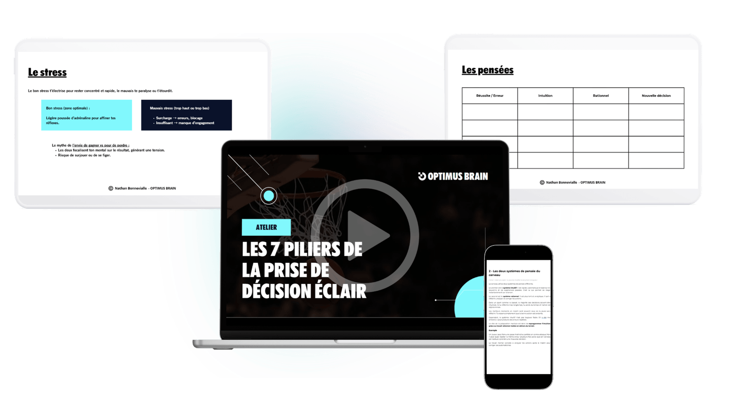 ☑️ Accès immédiat aux ateliers vidéos complets expliquant les 7 piliers de la prise de décision du basketteur.